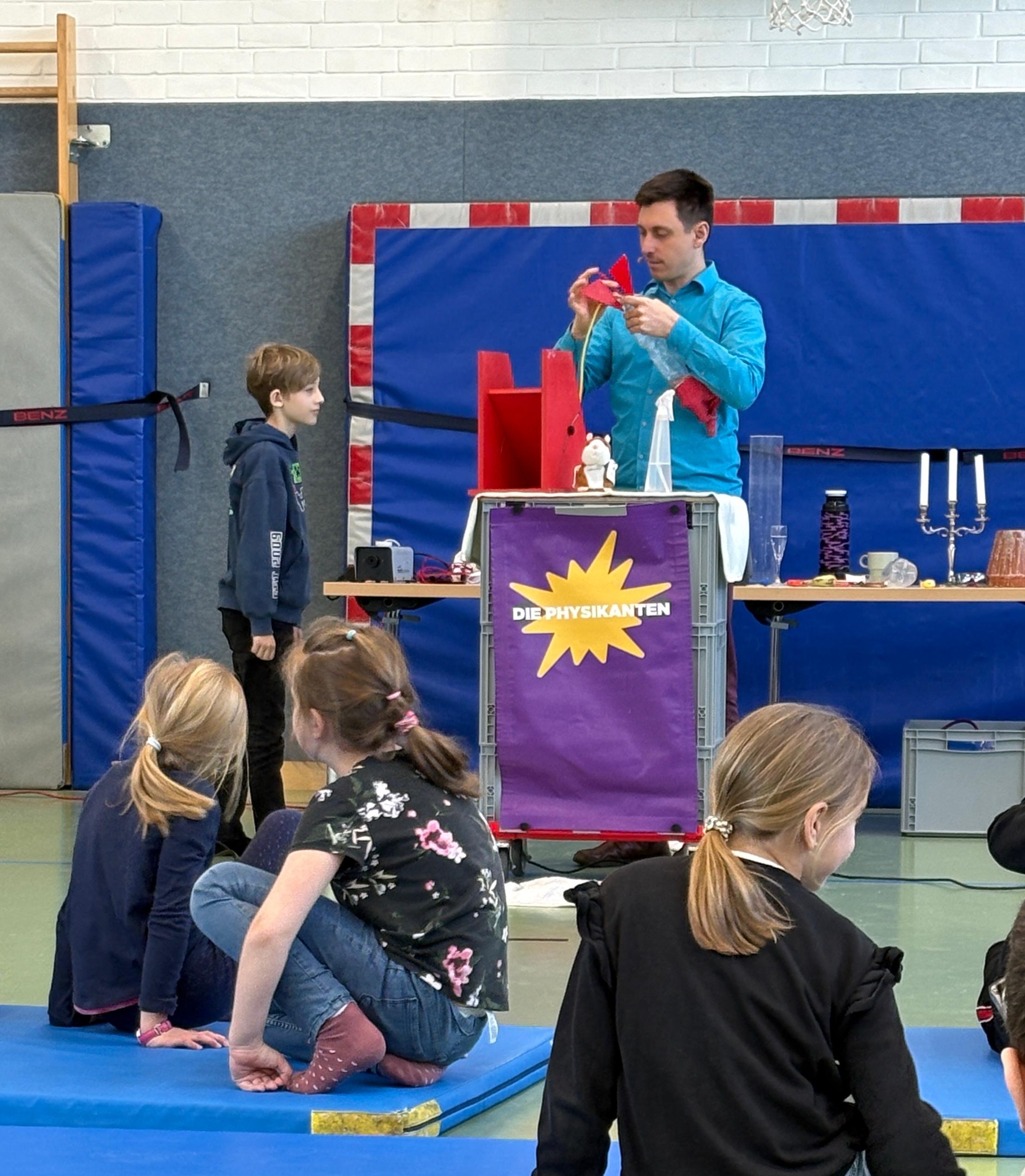Am Freitag, 20.03.26, war an der Teckschule in Wernau ein besonderer Tag. Von 10 bis 12 Uhr kam Chris an unsere Schule und stellte den Kindern unterschiedliche, spannende Experimente vor. Die Schüler/innen und auch die Lehrkräfte waren fasziniert und hatten großen Spaß an der Show.